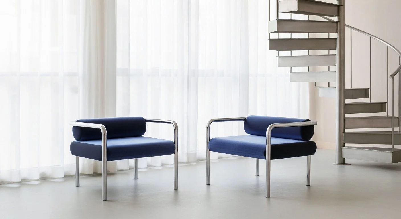 Drawing on a love of the early tubular steel chairs of Breuer and Stam, this occasional chair reinterprets modernist principles through a polished tubular stainless steel frame. Offered with upholstered or leather cushions, it is made in Australia.