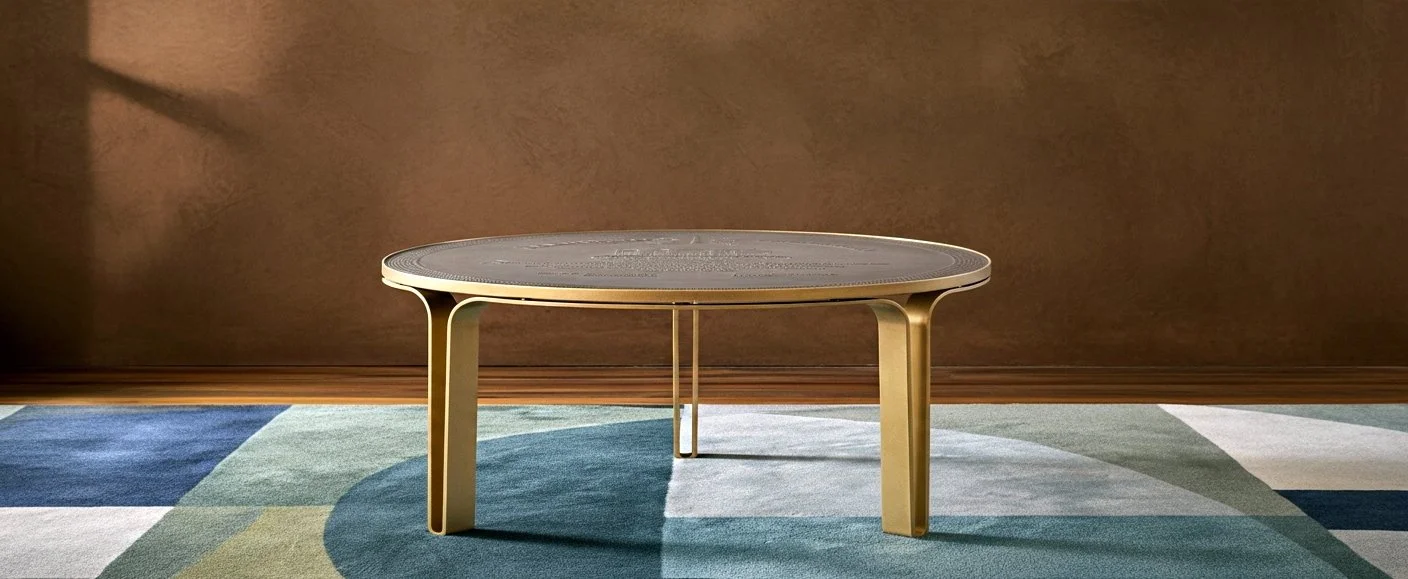 We envisioned a seamless ‘ribbon’ of brass that effortlessly suspends the glass top and plaque. A flowing, open, visually light spatial form with purity of structure, expressing the richness of the unadorned brass. It takes inspiration from the clarity of form and economical use of the rolled metal plate previously used in the street tree guards we developed for the City of Sydney. The craftsmanship executed by the fabricators makes the table appear deceptively simple with the brass structure defining the leg profiles in a continuous flowing band.